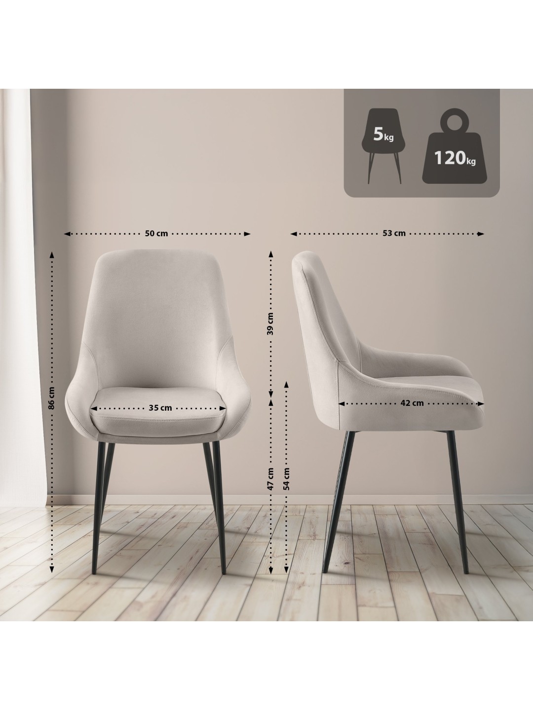 Elmira fluwelen eetkamerstoel, grijs
